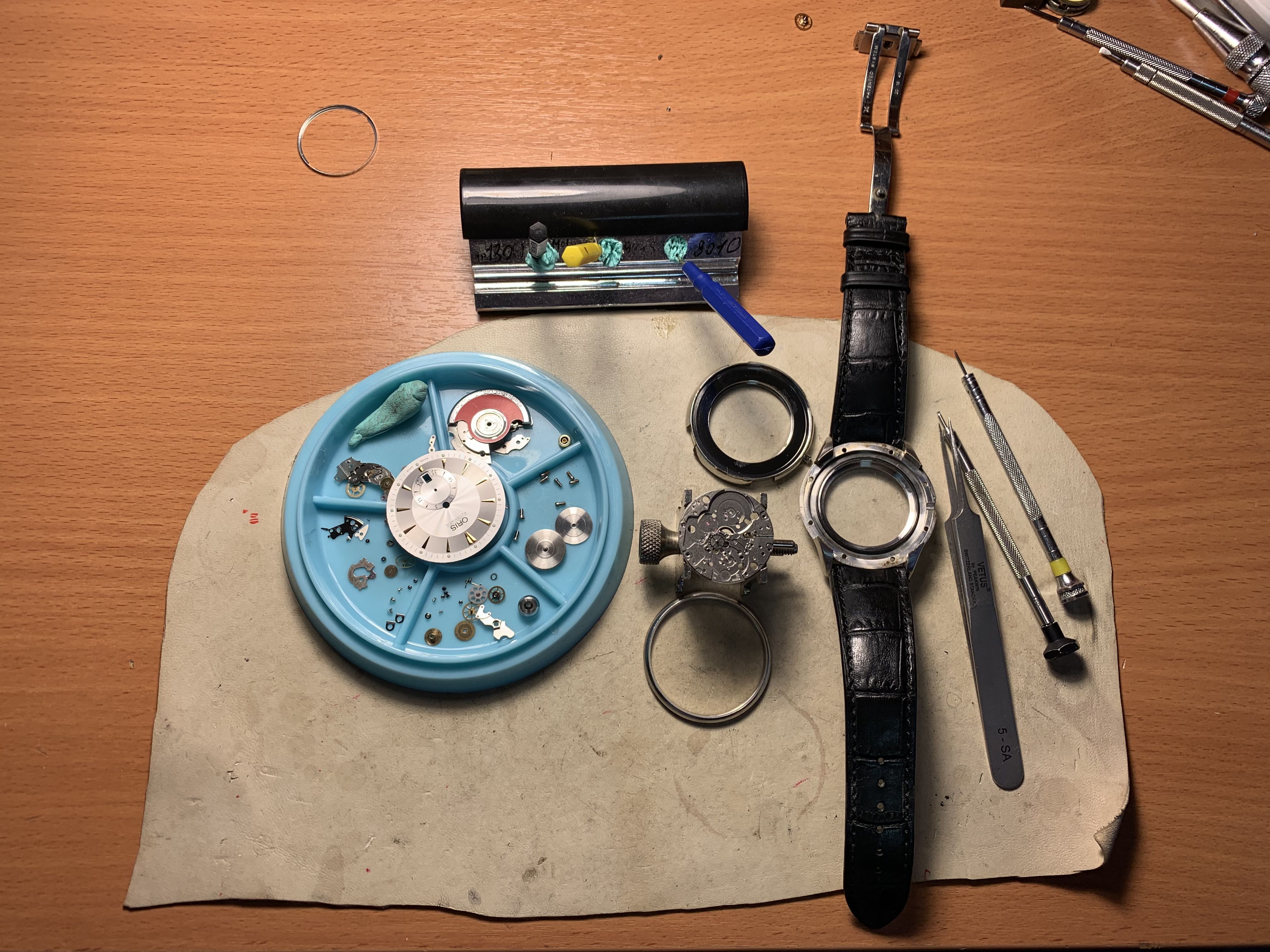 Определенные части часов необходимо очищать сильными чистящими жидкостями, которые повредят другие более деликатные детали, поэтому перед чисткой часы необходимо разобрать. Используйте большое количество воздухонепроницаемых горшков, которые можно пометить в местах расположения деталей. Когда мастера начинают учиться, они любят фотографировать каждый шаг, поэтому используйте свою камеру, чтобы потом вспомнить, куда идут детали. Небольшой совет новичкам: винты не все одинаковые, поэтому Вы не должны смешивать их.