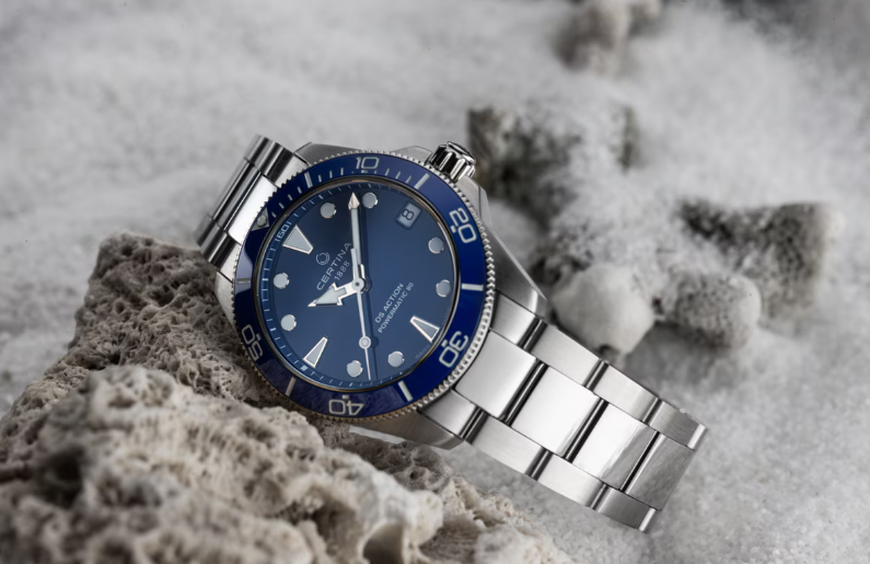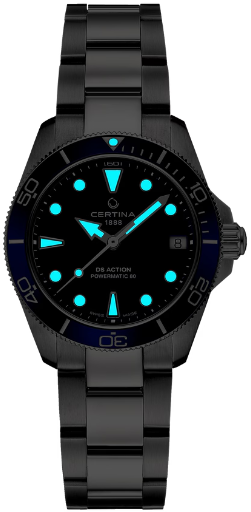 Море всегда находится в движении – как и все живое на Земле. Модель DS Action 34.5 мм станет идеальным аксессуаром для повседневной жизни – будь то занятия спортом или напряженные рабочие будни. Благодаря гармоничному диаметру 34,5 мм эти элегантные спортивные часы подойдут даже для узкого запястья. Для корпуса, браслетов и застежек своих часов марка Certina использует нержавеющую сталь 316L, отличающуюся повышенной износостойкостью, устойчивостью к коррозии и гигиеничностью. В стали содержится совсем небольшое количество никеля, поэтому этот материал не вызывает аллергии при носке. Керамика, используемая в часовом искусстве, обжигается при температуре более 900 C, что обеспечивает ее высокую прочность. Керамические безели, кабюшоны и детали браслетов марки Certina имеют не только красивый внешний вид, но обладают устойчивостью к царапинам, гипоаллергенностью и способностью долгое время сохранять первоначальную яркость и блеск. Super-LumiNova (SLN) представляет собой cветящийся материал с фосфоресцирующими свойствами. В темноте SLN типа BG W9, который использует Certina, испускает свет в виде голубого мерцания. SLN не вредит здоровью и используется для нанесения на стрелки, индексы и безели. В темноте он через некоторое время теряет свои фосфоресцирующие свойства, но они автоматически восстанавливаются на свету. Сапфировое стекло состоит из порошка оксида алюминия (Al2O3), раскаленного до 2.000 C. Получаемые в результате сапфировые пласты нарезаются на тонкие пластины, им придают требуемую форму и полируют. Сапфир абсолютно прозрачен, обладает высокой устойчивостью к царапинам и механическим повреждениям. По этим причинам сапфировое стекло стало неотъемлемой деталью концепции DS и используется во всех моделях Certina для защиты циферблата. Вес 125 гр. Водонепроницаемость 30 бар (300 м). Диаметр корпуса 34.5 мм. Толщина 11.9 мм. Между креплениями 18 мм. Механизм ETA с запасом хода 80 часов и сплавом Nivachron. Спирали баланса созданы из инновационного титанового сплава. Этот революционный материал был создан при сотрудничестве с компанией Swatch Group и используется лишь ограниченным числом брендов. Пружины Nivachron обладают повышенной устойчивостью к воздействию электромагнитных полей, ударам, старению материалов, экстремальному перепаду температур, выводят часы на совершенно новый уровень точности и обеспечивают долговечность аксессуара.